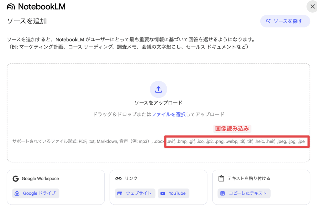 NotebookLMに画像ソース機能が追加されたのです。手書きのメモ、教科書のスクリーンショット、ウェブページの図表など、写真として撮影した画像をアップロードするだけで、その内容を理解して音声解説やレポートを生成してくれます。[2]