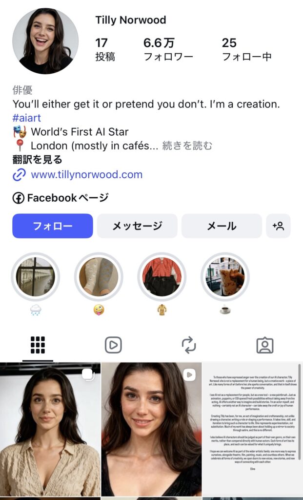 TillyのInstagram公式アカウントには、すでに6万6000人以上のフォロワーがいます。デジタル存在でありながら、実在のタレント並みの影響力を持ち始めているのです。