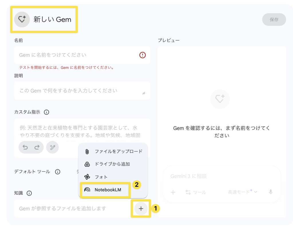 - 確認方法:Geminiの添付メニューに「NotebookLM」ボタンがあるか確認