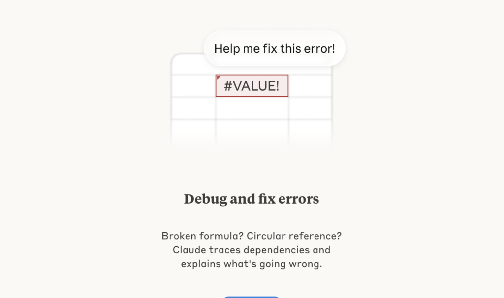 このアドインを使うと、開いているExcelブックの内容をClaudeが読み取り、数式の解説や仮定値の変更、エラーの修正、さらには新規モデルの作成までを自然言語で依頼できます。Claudeが行った変更はすべて追跡され、参照したセルへのリンク付きで説明されるため、AIが「何をしたか」を確認しやすい設計になっています。